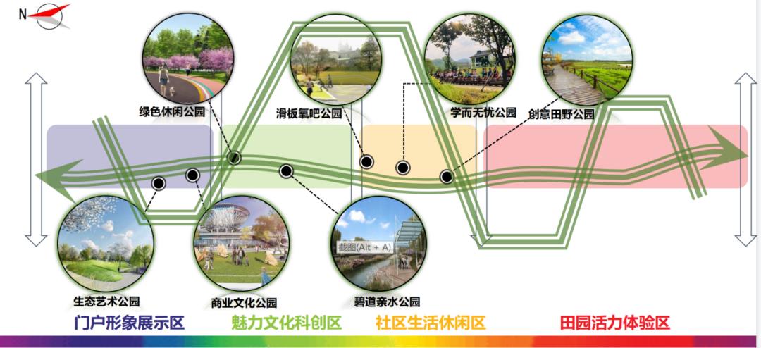 秉承“激活燕赵文化中轴,绘染太行都市画廊”的理念,以十字中枢为整体,构建双廊四带、三心四区、多节点的景观布局。新元沿线公里,占地118万平米,满足休闲、娱乐、健身、商业、研学、亲子等不同的服务需求。